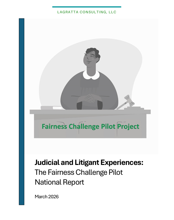 The Judicial and Litigant Experiences: The Fairness Challenge Pilot National Report has officially been released. Developed by LaGratta Consulting, and funded by the State Justice Institute, this report highlights key insights from The Fairness Challenge Pilot Project, which launched through a national solicitation of pilot sites and judicial officers. During the Fairness Challenge Pilot Project, four pilot site jurisdictions were selected, spanning six counties in four states: the Westminster Municipal Court, the King County Superior Court, the Boone County & Winnebago County Circuit Courts, and the La Crosse & Monroe County Courts. Chosen via a national solicitation process, the pilot sites hosted one pre pilot site visit and helped facilitate remote and court observations and planning. During the pilot, all judicial officers from each site participated in monthly remote training engagements and live meetings for six months (approximately two hours per month). They also agreed to install simple litigant feedback mechanisms for litigants leaving their courtrooms remotely and/or in person during the pilot.