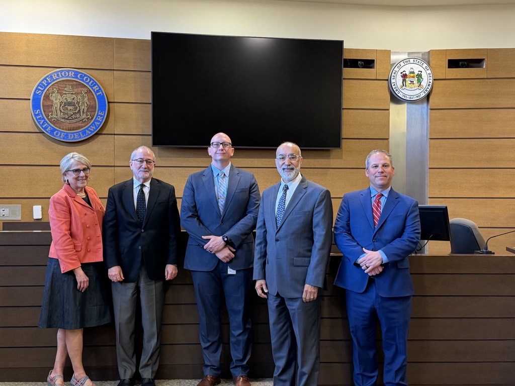 The FY 2026 2nd Quarter SJI Board Meeting was held on Monday, April 20th, 2026, at the Delaware Supreme Court in Wilmington, DE. SJI Executive Director, Jonathan Mattiello, and members of the SJI Board were joined by Ken Kelemen, State Court Administrator, pictured inside of the Leonard L. Williams Justice Center.