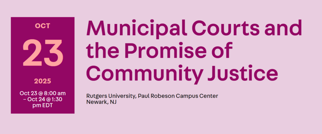 Upcoming Event! Municipal Courts and the Promise of Community Justice from October 23rd-24th, 2025, in Newark, NJ.